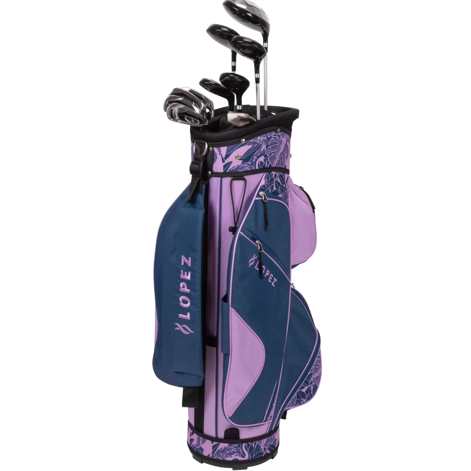 New And Improved Ashley 18Pc Package Set Continues Our Tradition Of Manufacturing High-Quality, Well-Balanced, Easy-To-Hit Golf Clubs That Our Lopez Golf Customers Have Come To Expect. This Package Set Includes The New Ashley 14⁰ Aluminum Driver, 3/5 Aluminum Fairway Woods, 4/5 Aluminum Hybrid Woods, 7/8/9/Pw/Sw Stainless Steel Irons, Zinc Putter And New Lightweight 600D Nylon Fashionable Cart Bag And Polyester/Nylon Headcovers. New And Improved Ultra Light Graphite Shafts With Soft Rubber Grips Allow You To Perform At Your Best. Lightweight Nylon Bag Now Features A 7-Way Divider At The Top To Protect Your Clubs, Single Padded Shoulder Strap, 7 Zippered Pockets For Multiple Storage, Umbrella Holder, Nylon Rain Hood, Towel Ring, Glove Holder, And Handles At The Top And Bottom Of The Bag.