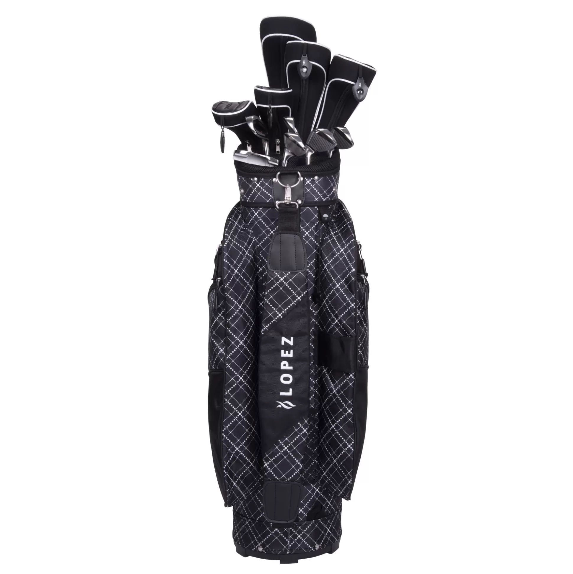 New And Improved Erinn 18Pc Package Set Now Offers Our Highest Quality Components To Elevate Your Game To The Next Level. This Package Set Includes The New Erinn 14⁰ Titanium Driver, 4/7 Stainless Steel Fairway Woods, 5/6 Stainless Steel Hybrid Woods, 7/8/9/Pw/Sw Stainless Steel Irons, Stainless Steel Putter And New Lightweight 1680D Nylon Fashionable Cart Bag With Leather/Nylon Headcovers. New And Improved Ultra Light Graphite Shafts With Soft Grips Allow Any Golfer To Perform At Their Best. Durable Lightweight Nylon Bag Features A 14-Way Divider At The Top To Protect Your Clubs, Single Padded Shoulder Strap, 7 Zippered Pockets For Multiple Storage, Umbrella Holder, Nylon Rain Hood, Towel Ring, Glove Holder, And Handles At The Top And Bottom Of The Bag.
