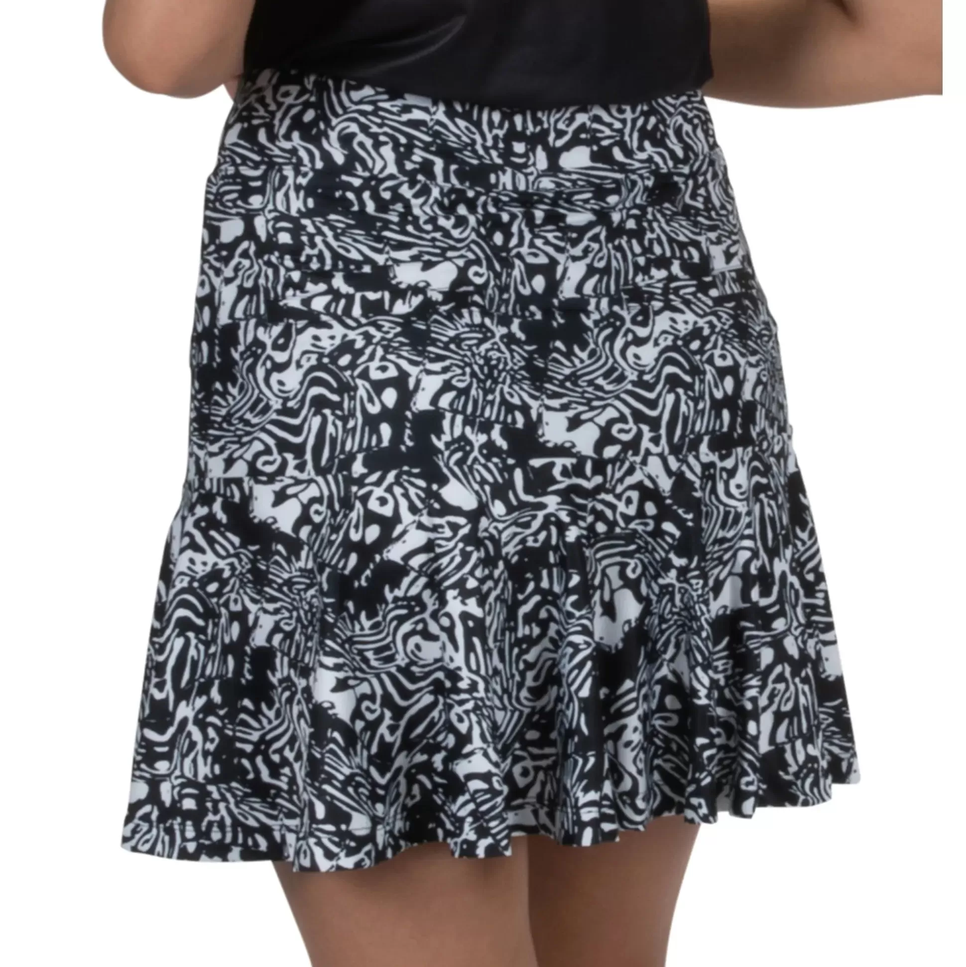 This 17” Pull-On Skort Features Front Tee Pockets And Back Slit Pockets. It’S Made Using A Beautiful Printed Polyester/Spandex Jersey Blend – Comfortable And Versatile For Your Game. You’Ll Barely Feel The Lightweight Undershorts, Giving You A Fantastic Range Of Motion As You Play. Using Delux Dri™ Moisture Wicking Technology, The Fabric Will Keep You Cool And Dry From The First Tee To The Final Green. The Flip Skort Pairs Excellently With Single-Coloured Or Printed Golf Tops.