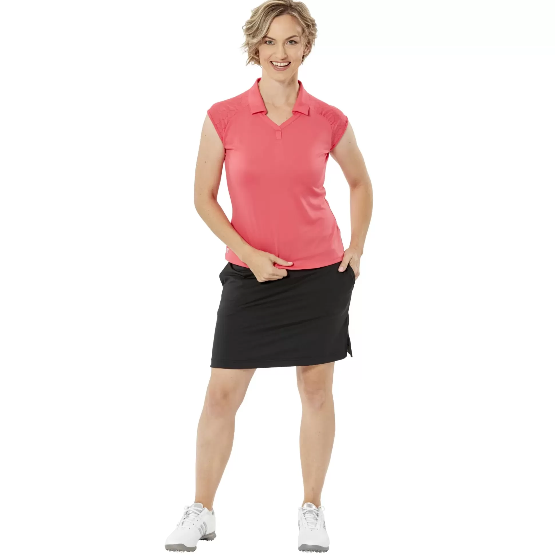 Sport Fierceness And Femininity As You Triumph The Eighteen Holes. The Optic Sleeveless Polo, Made With 100% Polyester, Features A Solid Jersey Body And Geometric Jacquard Sleeves With Delux Dri™ Moisture-Wicking Technology, Keeping You Dry And Odour-Free Throughout Your Game. Its Self-Collar And Open V-Neck Attractively Frames The Golfer With Fitted Comfort And Poise As She Takes The Lead With Her Under Par Strokes. This Polo Is Essential For Any Golf Wardrobe, Leaving You Sleek And Shaped For Year-Round Swings.